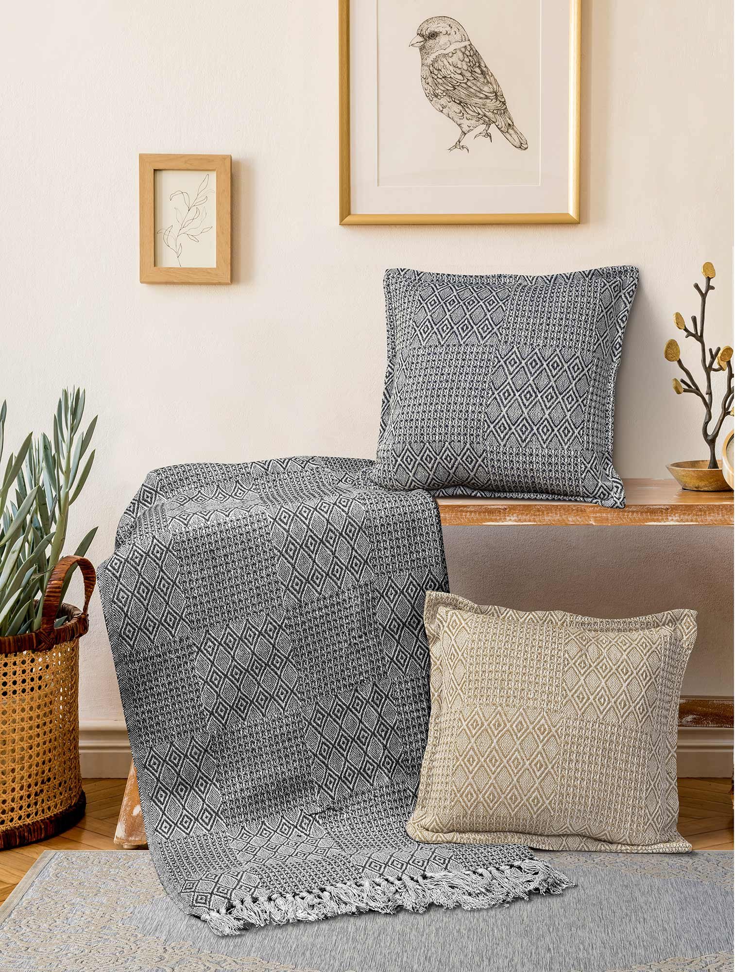 Κατασκευασμένα εξ ολοκλήρου στην Ινδία με 100% βαμβακερά νήματα, τα ολοκαίνουργια ριχτάρια και διακοσμητικά μαξιλάρια της MADI homeware “feels like home” θα διακοσμήσουν το πολυσύχναστο καθιστικό σας με τα Boho μοτίβα τους! Ανακαλύψτε όλα τα διαθέσιμα σχέδια της MEMORIAL Collection και επιλέξτε ανάμεσα στους μπεζ ή στους navy blue χρωματισμούς για να ανανεώσετε τους αγαπημένους σας χώρους.