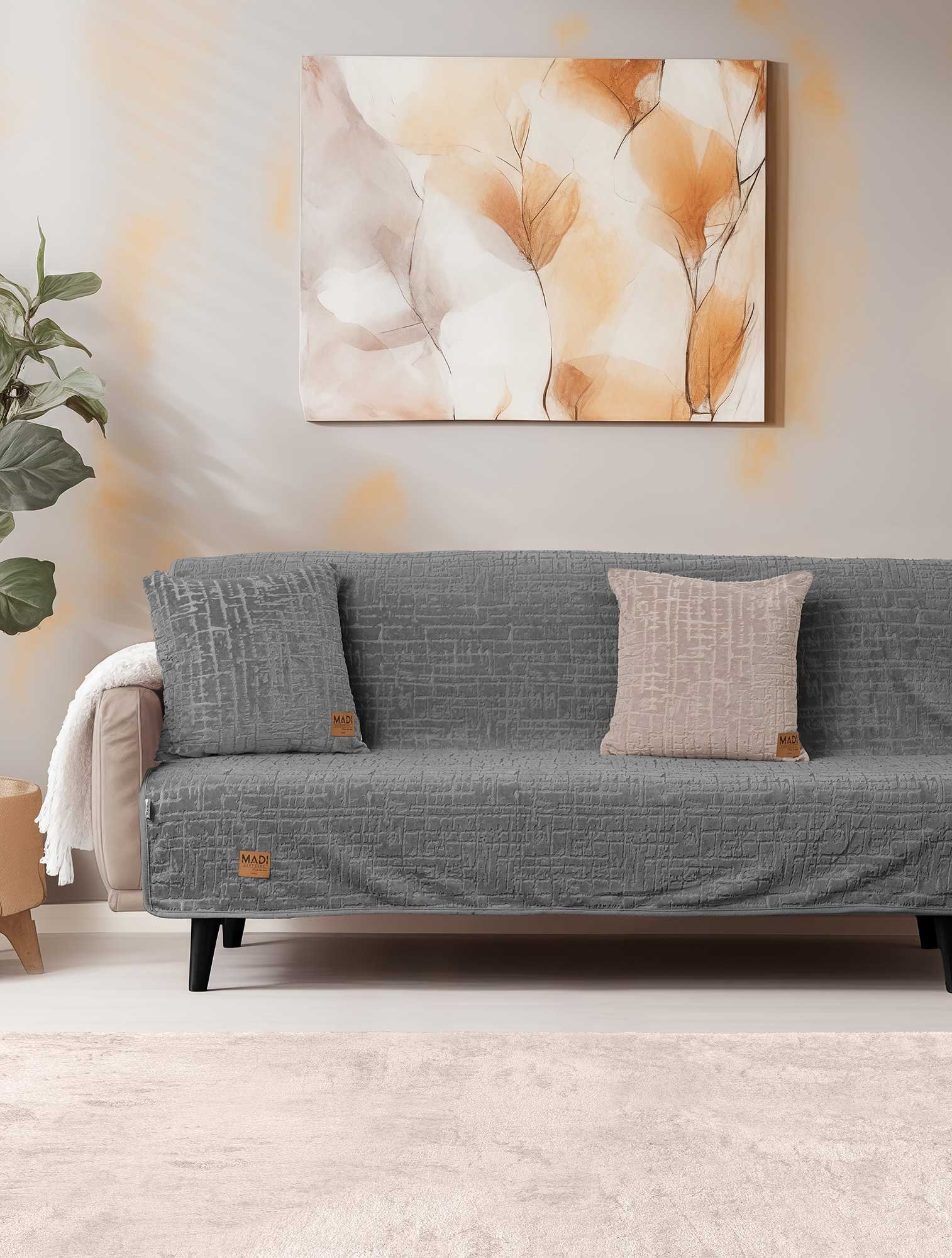 Τα ανάγλυφα ριχτάρια και διακοσμητικά μαξιλάρια της DUNE COLLECTION της MADI με αντιολισθητική επένδυση προσφέρουν την ιδανική λύση για να διακοσμήσεις το σαλόνι σας με στυλ και πρακτικότητα. Διαθέτουν ανάγλυφες υφές που προσθέτουν βάθος και αισθητική στη διακόσμηση του χώρου σας. Η ειδική αντιολισθητική επένδυση στην κάτω πλευρά εξασφαλίζει σταθερότητα, αποτρέποντας τη μετακ’ινηση του ριχταριού από τον καναπέ ή την πολυθρόνα. Αυτά τα ριχτάρια δεν είναι μόνο διακοσμητικά, αλλύ και πολύ λειτουργικά, διατηρώντας το καθιστικό σου κομψό και οργανωμένο.